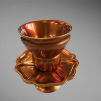 ご寺院様でご使用なされる献茶器を製作いたしました。こちらは六葉型の京仏具。 桧で木地を製作し、朱塗りで漆を塗った後金...